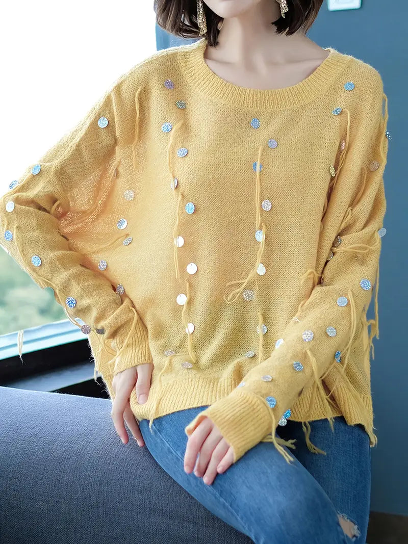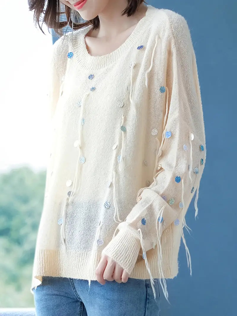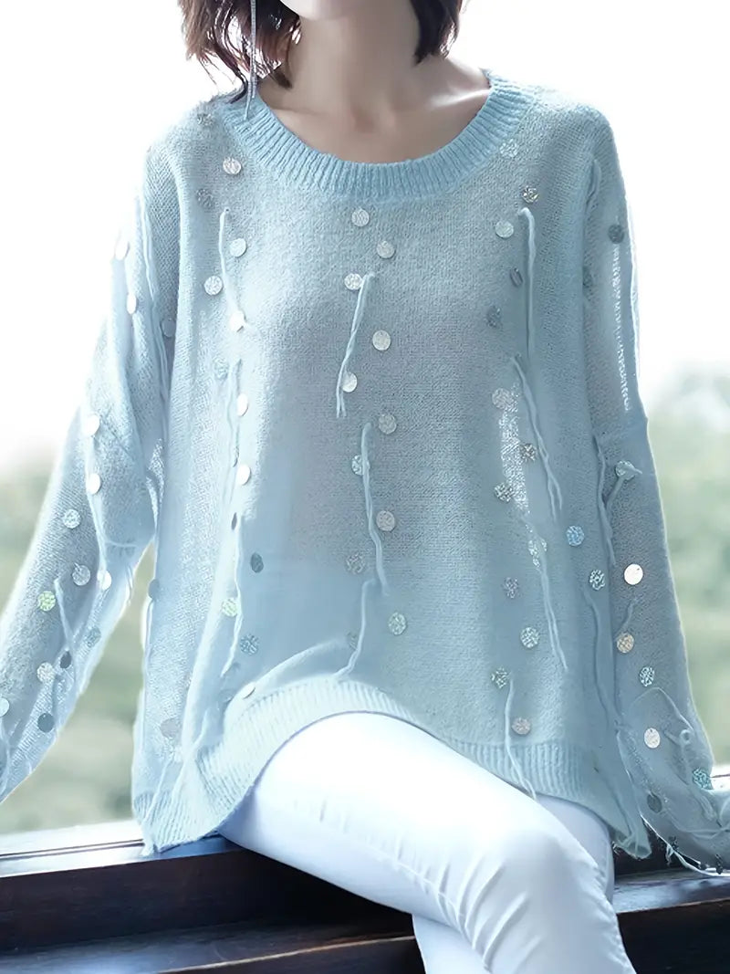 Ten modny damski sweter dodaje odrobinę glamour do twojego codziennego wyglądu. Lustrzane metaliczne detale tworzą zwariowany i unikalny wygląd, podczas gdy luźny krój zapewnia maksymalny komfort.